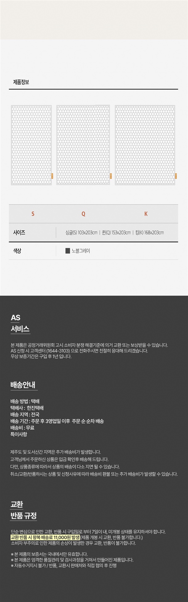 · 교환/반품/AS 등은 "공정거래위원회"에서 정한 소비자 분쟁 해결 기준을 따르고 있습니다.