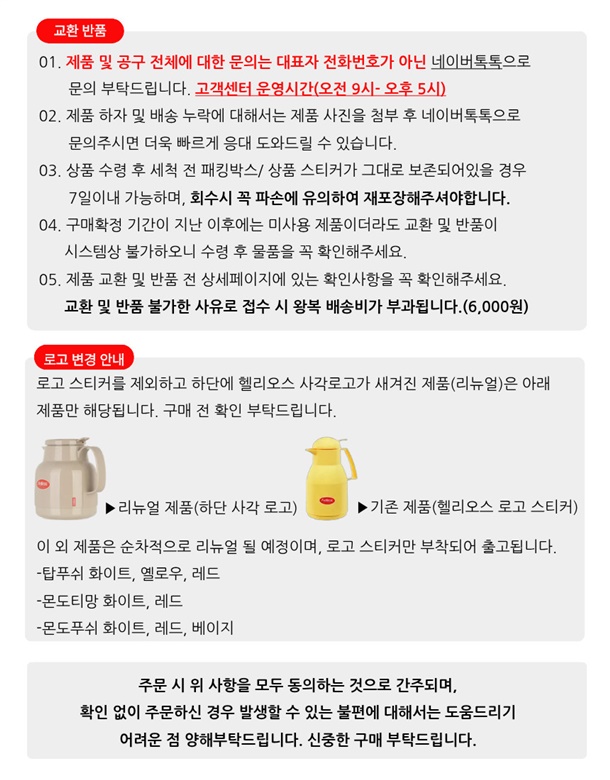 · 일부 상품에 대해서 교환/반품 정책이 위와 상이할 수 있습니다.