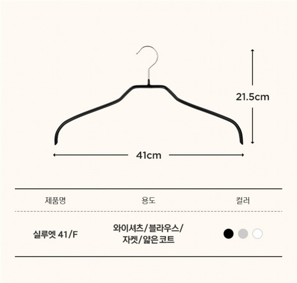 와이셔츠, 블라우스, 얇은자켓류 같은 얇은 옷 전용 옷걸이입니다.