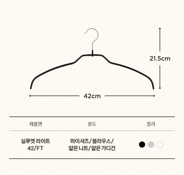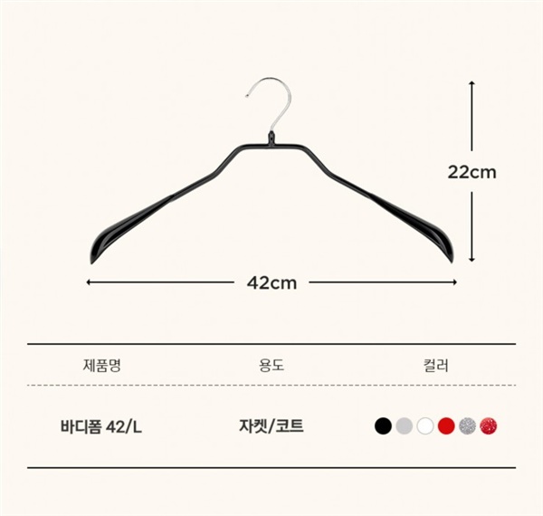 의류용의 가장 기본적인 옷걸이로 가로42cm