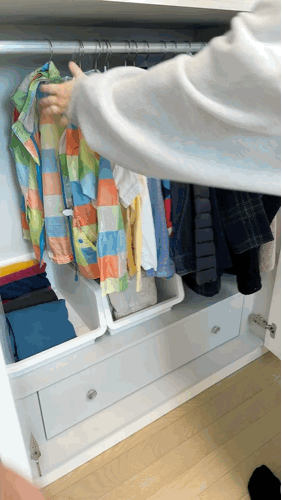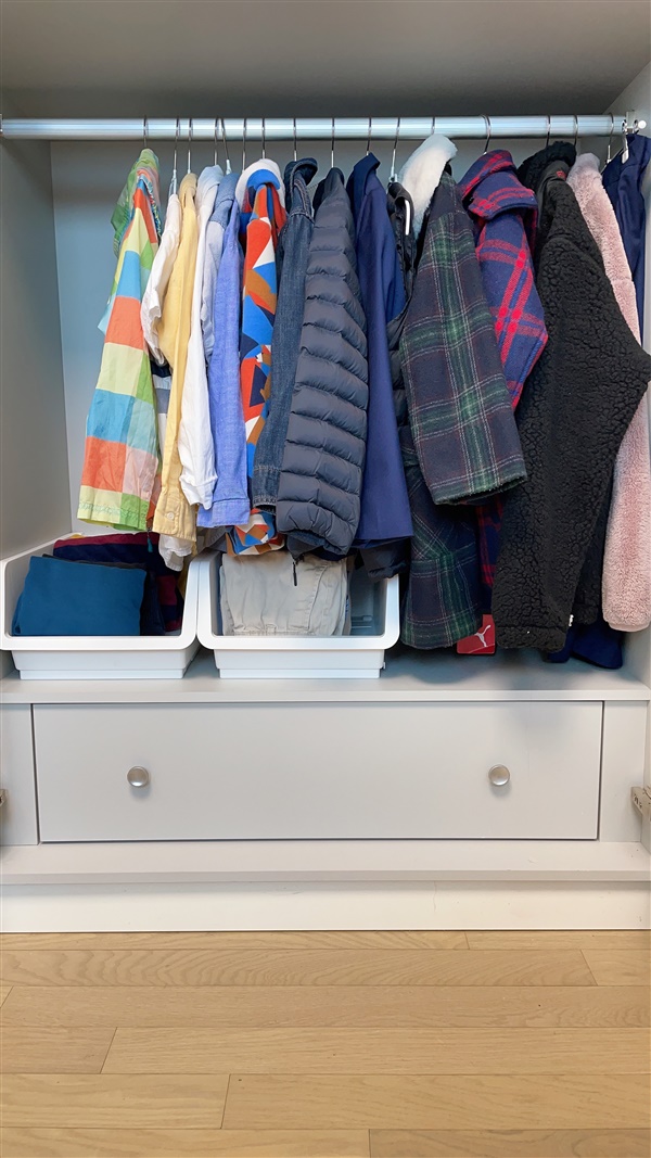 마와 옷걸이로 정리한 옷장