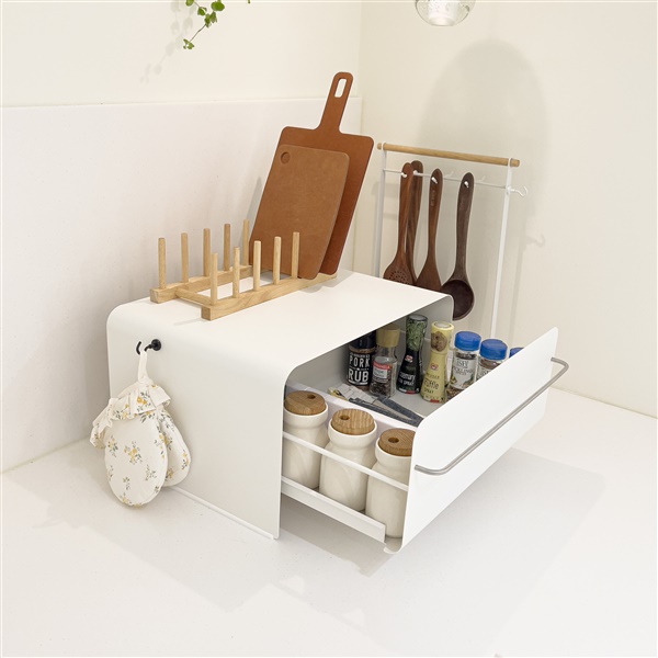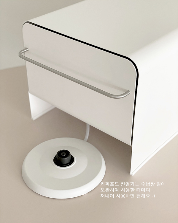 - 수납함 상단에 토스터기, 커피포트의