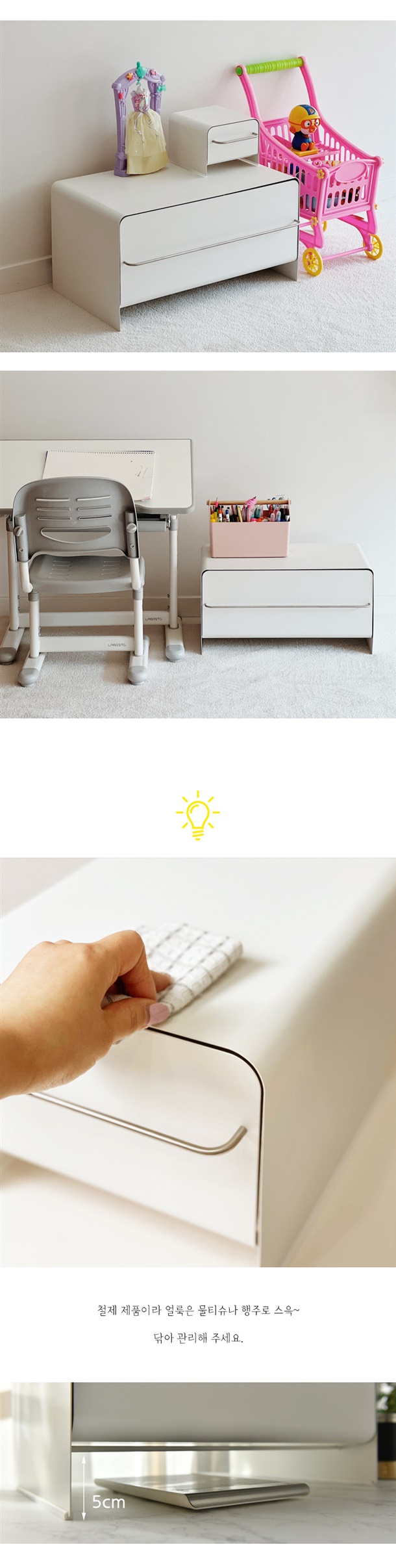 - 무거운 제품을 올려놓고 오래 사용 시 제품의